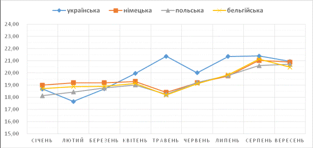 0,46 грн./кг, 0,80 грн./кг та 0,63 грн./кг для Німеччини, Польщі та Бельгії