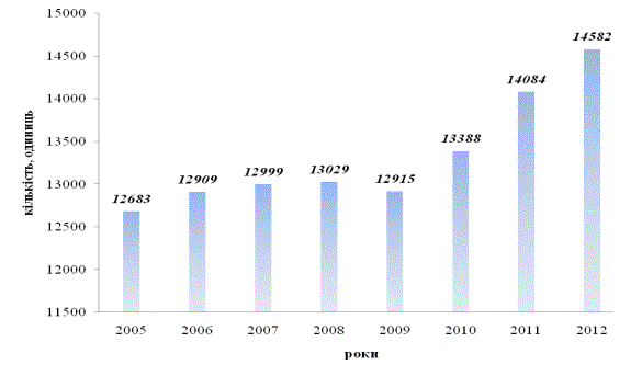 кількість збільшилась на 1667 одиниць (або на 12,9%) (рис. 1).