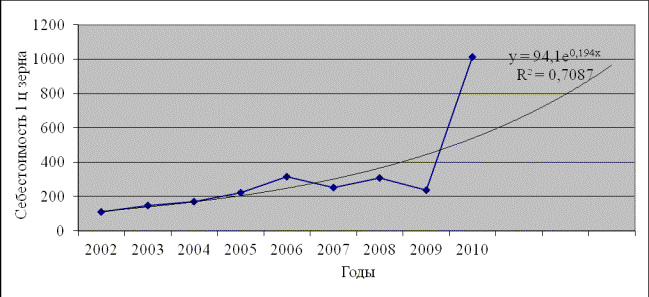 единицы продукции, так в среднем за 2005-2010 гг. себестоимость 1 ц зерна