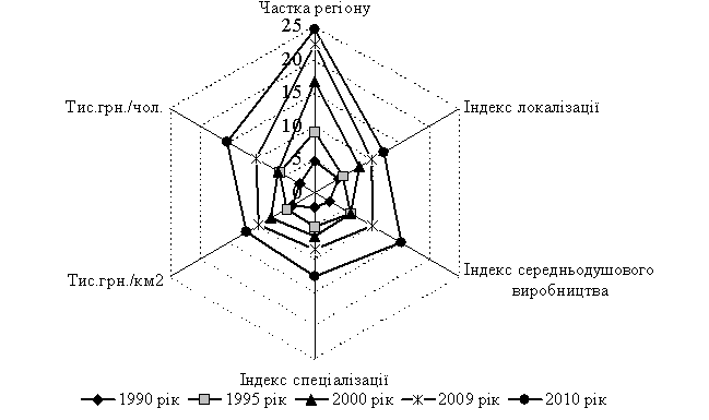 можна спостерігати на основі показника частки регіону у загальнонаціональному