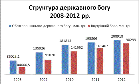 спостерігати, обсяги державного боргу зросли з 473 млрд. грн. у 2011 році до 515 млрд. грн. у 2012р, в причиною цьому