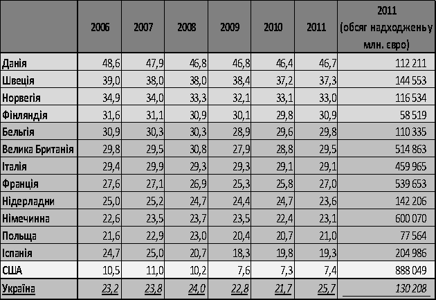 3 Частка податкових надходжень у ВВП в країнах західноєвропейської моделі