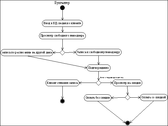 «Бухгалтер» просматривает расписание менеджеров, и записывает клиента, если же