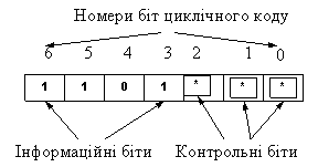 кодова комбінація 1101001, в якій перевірочні розряди займають три останні
