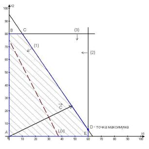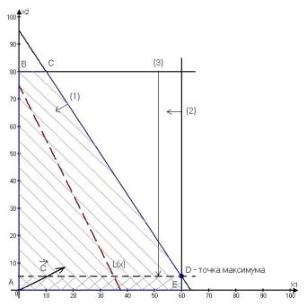 темным цветом. Кроме того, любое оптимальное решение для этой новой области допустимых решений будет хуже точки D.
