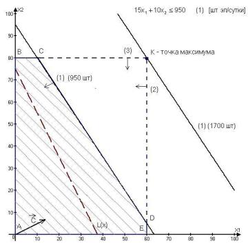 ограничения (2) (950 шт./сутки). Согласно этому ограничению, на производство в