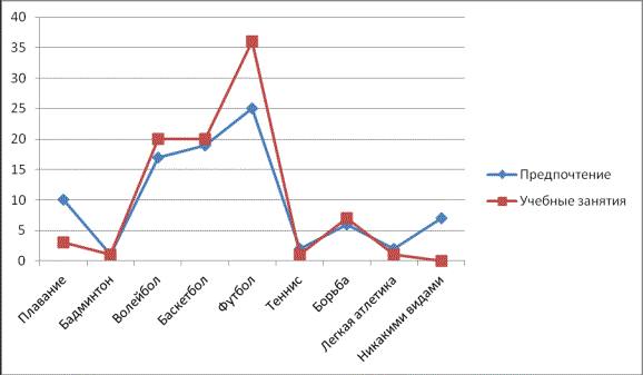 предпочтение (любимый вид спорта) и желание заниматься определенным видом