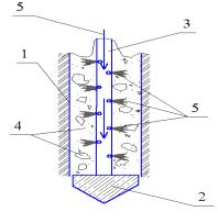 перфоровану трубу цементного розчину 5, який скріплює конструкційний матеріал