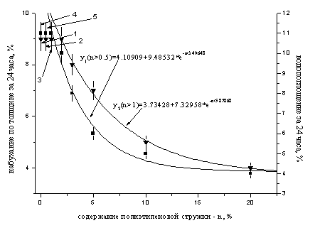 по толщине и водопоглощения за 24 часа от количества введенного полиэтилена