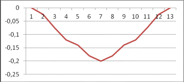 Рис. 7. Эпюра деформаций, возникающих в трубопроводе в