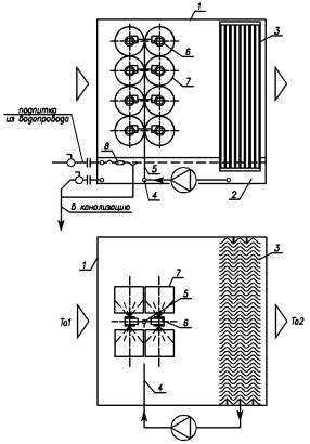 забирается циркуляционным насосом и вновь подается к форсункам.