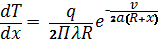 как в области позади источника теплоты R= -x и