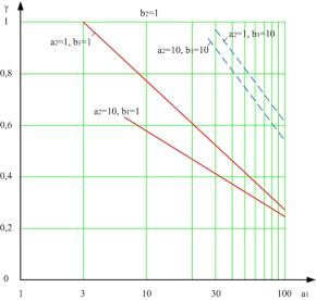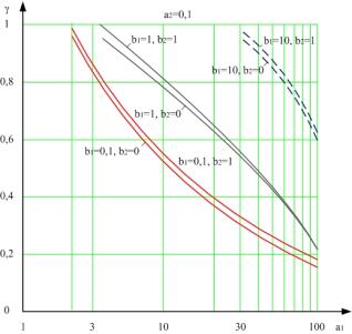 ростом a1 и a2 (рис. 4) и увеличивается с ростом b1 и b2 (рис. 5). При этом на