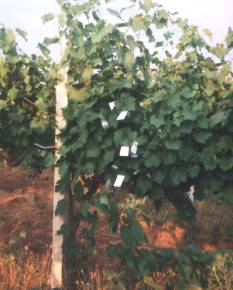 на кроне виноградного куста; б) заезд агрегата в междурядие.