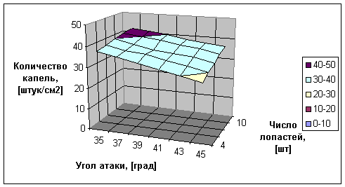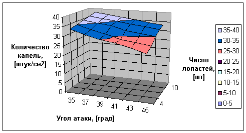 капель в зависимости от угла атаки лопаток и их количества, при скорости