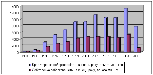 Динаміка кредиторської та дебіторської заборгованості підприємств Мінвуглепрому