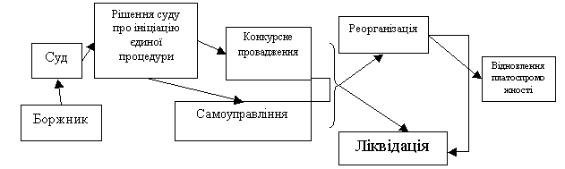 капіталі. Механізм банкрутства в Україні має такі етапи: 1 – розгляд на