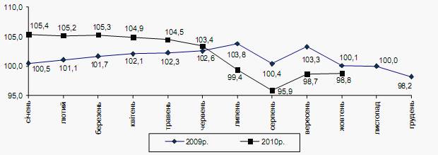 Індекс споживчих цін у жовтні 2010р. становив 100,5%,