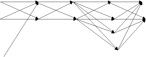 Соединим выделенные точки по определенному правилу, используя метод направленных графов. Для получения графа необходимо каждую точку предыдущих множеств соединить со всеми точками последующего подмножества, точки же одного подмножества между собой соединять нельзя. Полученный граф называем упорядоченным ориентированным. В нем можно менять местами число как сами множество Х1, Х2 , Х 3 , Х4, Х5, так и их элементы (вершины точек). Каждая пара вершин соседних множеств Х1, Х2 …, соединяется линией, которая называется дугой графа. Нас интересуют только пути от миноранты до мажоранты на графе. Два пути называется независимыми, если они отличаются хотя бы одной дугой. Следует отметить, что число независимых путей на ориентированном графе равно произведению числа элементов в подмножестве ХJ , где J= к1…, n. Каждый путь на графе G от миноранты до мажоранты может отобразить характеристику какой – либо системы, т.е. МJ , Є, М(G) , где М(G) – множество путей на графе.