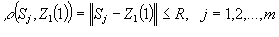 максимумов плотности объектов исходного множества S. Гиперсфера с центром Z1 представляет
