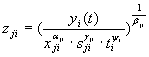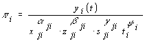 где αij, βij, γij - показатели степеней при независимых параметрах соответственно xji, zji, sji, определяемые методом нулевых размерностей для yi-ой характеристики.