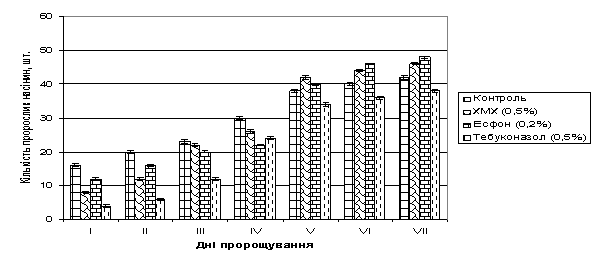 дії ретардантами відрізнялося інтенсивністю проростання і схожістю (рис. 1).