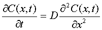 описывается вторым уравнением Фика, основанном на законе баланса масс. Т.е.: