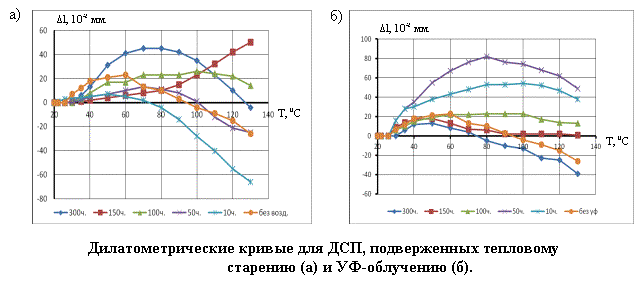 На рисунке представлены дилатометрические кривые древесностружечных плит,