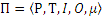 -конечное множество переходов; I-входная функция переходов; О-выходная