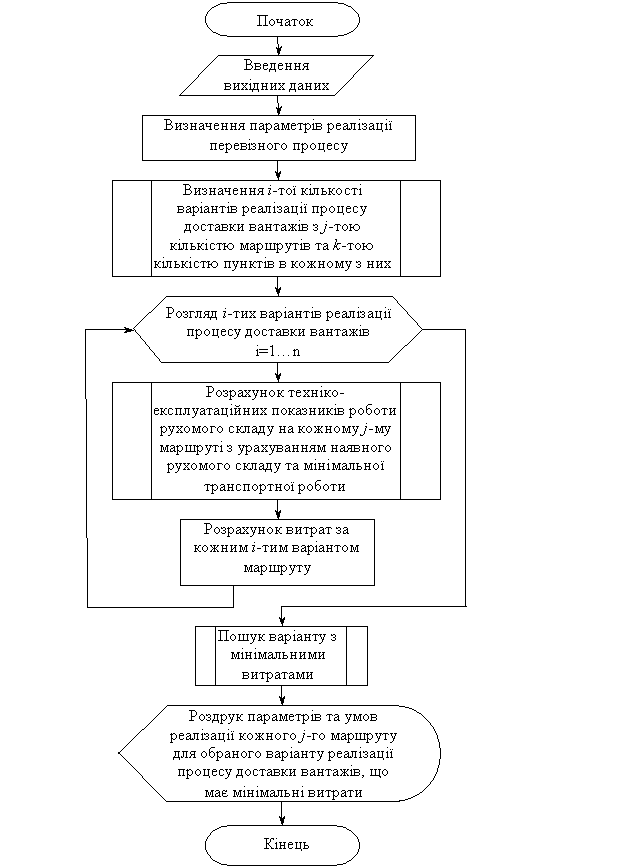 засобів різної вантажопідйомності); кількість проміжних пунктів (k), в