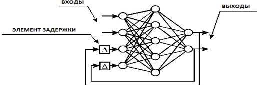 обратными связями. При этом каждый нейрон получает задержанные выходные сигналы