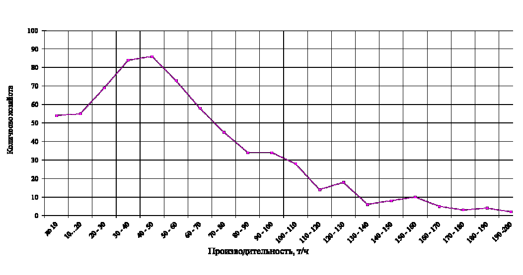 1. Распределение хозяйств по требуемой производительности зерноочистительных