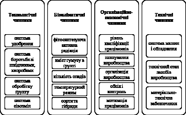 Рис. 1. Чинники ефективності виробництва сільськогосподарської