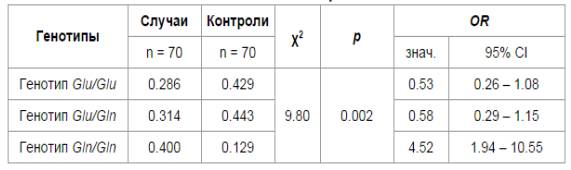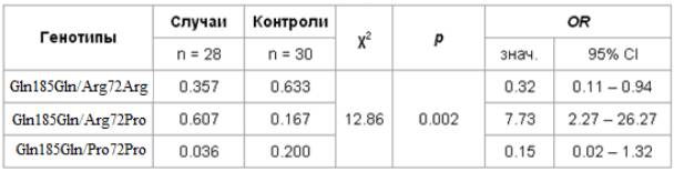 ≤0,05. Все это указывает на важную роль полиморфного аллелотипа Gln185Gln
