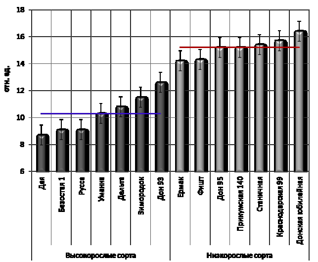 образцов у низкорослых сортов озимой пшеницы выше, чем у высокорослых (рис. 1).