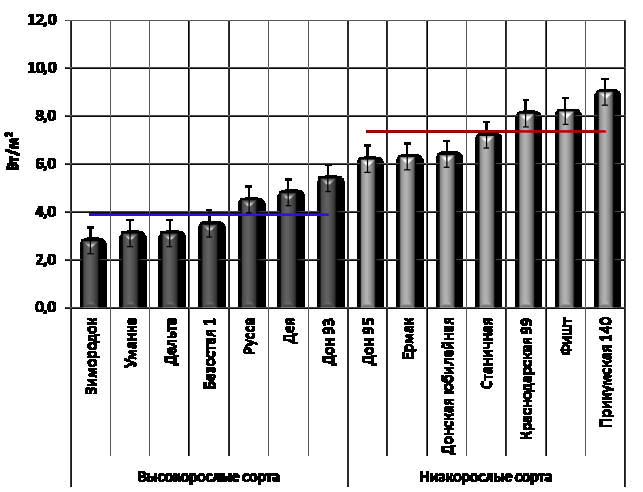 том, что низкорослые сорта по общему количеству реакционных центров превосходят