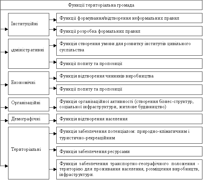 територіальна громада виконує функції: 1) функція пропозиції – виробництво
