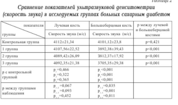 скорость звука на большеберцовой кости по сравнению с контрольной группой.