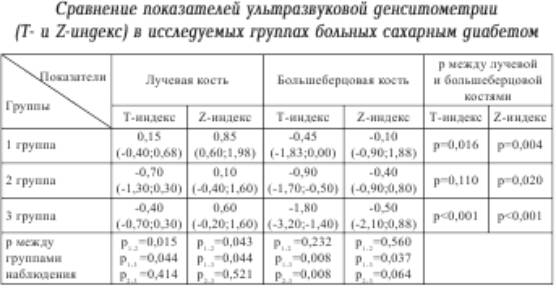 Z-индекс больных сахарным диабетом на большеберцовой кости значительно меньше,