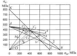endurance limit of a symmetric cycle σ-1=460) the diagrams of the limiting amplitudes