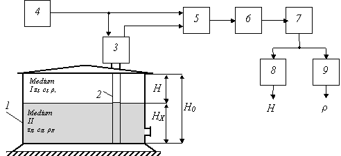 II), empty part of tank is filled with Medium I. Generator 4 sends a sounding