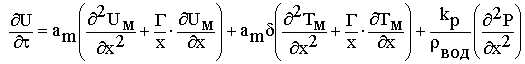 Для решения предложенной системы дифференциальных уравнений необходимо знать поле давлений в различных слоях материала, которое можно определить из выражения, полученного с учетом преобразования уравнения Менделеева-Клапейрона