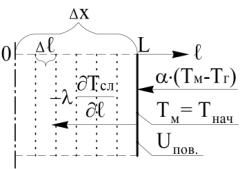 Рис.1. Схема граничных условий процесса сушки слоя материала |