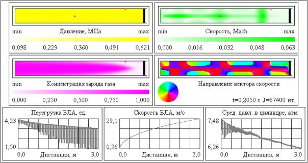 полей (давления, температуры, скорости и др.), а состояние подвижных частей – графиками