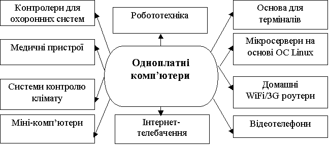 Рис. 1. Сфери застосування сучасних одноплатних комп’ютерів
