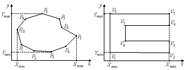 алгоритм забезпечує визначення опуклості вигнутих (Г и П - подібних) областей,