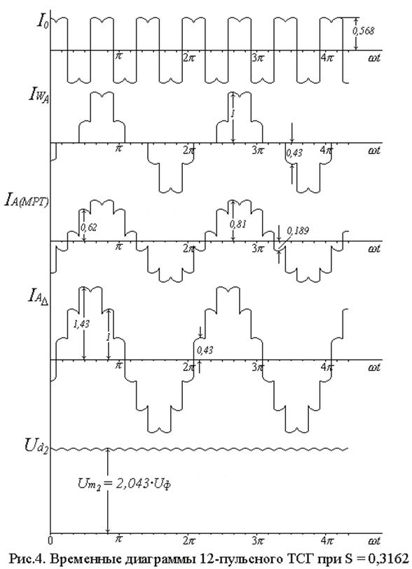 Рассмотренные режимы работы 12-пульсных ТСГ постоянного тока свидетельствуют о