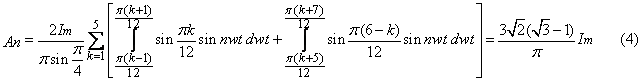 полуволны, коэффициент An (результат вывода формулы для An приведен для первой гармоники)