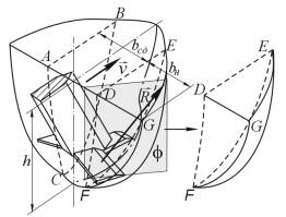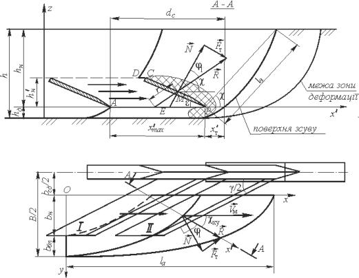 Товщина стружки ґрунту у напрямку xʹ відповідає відстані між двома черговими поверхнями