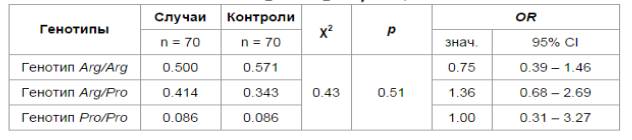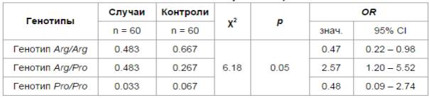 генотипами (Arg/Arg, Arg/Pro, Pro/Pro)